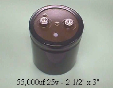 Here's another item so requested that I decided that I'd go ahead & have them made. It's been a long lead time, but there are now 9 cases of them taking up residence in Alice's hallway while waiting for new homes. A lot of the Midway games had these filters in the big silver box located in the cab bottom & most often referred to as the "suitcase" power supply.... weighs a lot more than any suitcase I've ever packed, though :-() They can be used to replace the Taito power supply filter (51,000uf 25v), Gottlieb filters (50,000uf 25v) and were also used in other games, with values from 49,000uf to 60,000uf 25v for filtering the DC power.