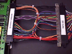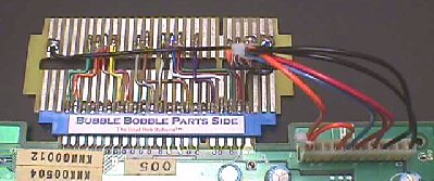 These are links to pics of various types of adaptors and any that are for sale will have a price next to them. I've never liked the prefab adaptors that have been around for years. Most of them constrict the traces on one or more lines & do not allow you to ease the current draw as needed, so I've always made my own hardwire versions whereby I could control the adaptor rather than adjusting the power supply everytime that a board was changed and I like having a completely repairable adaptor should something ever go wrong with it. Being able to control I/O lines easily is another plus to them,e.g., the pads that need to be toggled low for cocktail cab use, or in simply rerouting power lines to points that really need them, such as with the Galaga where not only is the edge connector fed with 5 volts, but the video bd & CPU boost connector are fed, also.