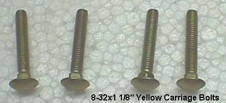 You can use these yellow 8-32x1 1/8" carriage bolts as is for mounting the joystick on a Pac-Man, Galaxian or other metal CPs that were wood backed. As with any carriage bolts, you can spray paint the heads black if you want.