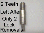 Another question that arises from time to time, is 'can I salvage any of these old locks that I have removed?' & the answer is yes. You can make an old spare key fit a lock that uses the same type of key, i.e., the key must fit into the barrel, by filing notches where needed & filling in unneeded ones with solder after wire brushing for adherence. You can remove some of the pins from the cylinder... down to just 1, if you want... or simply move them around to needed positions if you want to keep it intact. Saving any of the pins will insure that you have a properly spaced one available for your next experiment. BTW: You need to watch for flying tiny springs that are used for returns on the pins, also.