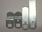 The first pic on the left is just a simple double "D" with four notches that bend out to a 90º angle to act as an anchor into the wood itself when you tighten down the mounting nut. This type often gives under a little pressure & ends up spinning (turning) in the mounting hole. The second pic shows one with the 4 little *tacks* and two holes for using screws for additional staying power. Now the third one is strong enough to actually cut out the remaining portions of metal on it to make it into a full circle after mounting it to the wood on the cab. The final pic shows where the term 'double "D"' comes from. K... we're through the wood & off to grandma's :-)
