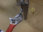 That said, if your coin door is just a tad off & you use care, you can tighten them while mounted with a crescent wrench. I'll put another pic below to illustrate this, but it is not a good idea to try this on back doors since so many are made from pressed wood, particle board or chip wood that any measurable force applied can actually give you a handful lock with a trapezoidal or pie-shaped piece of *wood* attached to it :-(