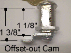 The 7/8" lock above has an offset-in cam attached showing how it can be used in place of a 5/8" lock. The 1 1/8" lock has an offset-out cam attached showing how it can be used to replace the 1 3/8" lock. Of course, you can swap them around to be used to replace each other, i.e., the 7/8" with an offset-out will replace a 1 1/8" lock and the 1 1/8" lock with an offset-in cam can replace a 7/8" lock.