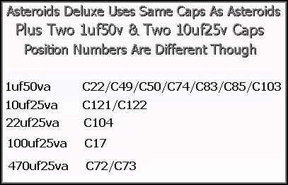 Asteroids Deluxe PCB Cap Kit