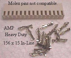| .156 Housing with pins 15 pos (AMP Heavy Duty) | $2.50 | |