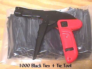 | 4" Cable Ties Bag of 1000 Black + Tie Tool | $17.00 | |