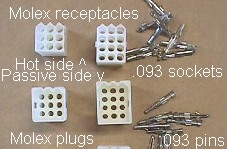 So, the top set of receptacles in the pic to the right, will terminate the wires from the PP-7B power supply & also the wires coming from the new switcher, while the ends of the wires going down to the game pcb will terminate with the bottom passive plugs with pins which can handily plug into either source of power .....PP-7B or switcher.