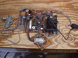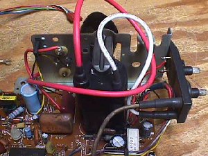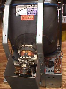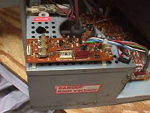 When I awoke from my customary 4 hours of sleep this morning I found that Alan was still having trouble installing a Sanyo 20EZ flyback in his monitor. It's been some 20 years since I laid eyes on a 20EZ & replacement flybacks were not even available at that time. Most of what I remember about that chassis was that it was a nightmare to work on, but had one of the better pics of the day. Now these old eyes & now keyboard soft hands aren't much for doing the actual work any longer, but I figured I'd give it a try for old times sake. I decided to call the local guys looking for a 20EZ monitor to experiment with & got lucky on the first call... well, if you call fifty bucks lucky! I jokingly asked him what game came with it & without skipping a beat he says it's just the monitor & I think the flyback is shot. Well... lucky me... that's what I want to attempt to replace :-) About forty-five minutes later I was the proud owner of a Sanyo 20EZ dead monitor. Actually, the screen looks to be in pretty good condition & it looks relatively clean in the back. ![]() I'm thinking this baby has been in someone's home & not on the street for most of it's life. No bugs, no chewed up wiring, no hacks & no 2 inches of soot or nicotine on the back of the pic tube. ![]() Let's take a look at that flyback hiding under this cage. Just four screws & it's gone! ![]() Of course, you have to unplug the video inversion bd & it's 12V feed line to set it entirely free. ![]() K... now it's gone! ![]() Hmmm... it appears his diagnosis was correct... nice hole burned in the top of the flyback allowing all that HV to escape into the atmosphere. Let me inject a little note here for any flyback that you suspect is leaking but that you can't see. Most times you can detect a leak by the pic flickering or the raster just dimming for a second due to the HV lowering as this occurs, but another way is by smell. Corona discharge produces ozone which has an indescribable oder that you will recognize after your first visit with it.... much like the selenium rectifier smell of rotten eggs when they went belly up. ![]() K... like the G07 & others this flyback uses a separate focus/screen block which you will have to reuse with the replacement flyback. ![]() One screw attaches this block to the actual OEM flyback, so I can see other mounting arrangements will have to be made. ![]() I noticed that this chassis does not have the audio amp installed, so it must have been used for JAMMA games or possibly a single classic game with it's own amp. ![]() Dull grayish solder joints like these should have new fresh solder applied to them before trying to unsolder them, so that the solder sucker can clean the terminals free very easily. ![]() With the OEM flyback free from it's mounting position you can see where they hid the screen control hook up... underneath & directly to the winding pins. ![]() Heat the solder on these one at a time & slide them off making sure to note where they are attached. ![]() It's best to just clean the wires of solder, so that they slip right onto the new flyback's pins. Slide them all the way to the bottom & solder them being careful not to put any solder on the lower part of the pins... they still have to go cleanly through the PC mounting holes. ![]() Screen hooked up & now for the focus control. Cut the old focus wire about in the middle & remove the half that plugs onto the block. Remove the boot & place it on the new flyback's focus wire right away, so that you don't forget. ![]() Next unsolder the pin that the boot exposed. A small screwdriver can be inserted into the space on the pin's insulation saddle & twisted to open the crimp releasing the pin. ![]() Then put it on the new focus wire, crimp it to the insulation & solder it in place. Cool for a minute & then slide the boot on & attach it to the block. ![]() Now everything is hooked up & it's ready for reinstall. ![]() What to do for remounting the focus block now that the old perch is gone. ![]() The simplest way that I see is to just drill a hole in the frame wall & attach it with a single screw again. ![]() My preference at this juncture would be to omit the cage, but if you wanted the cage back the simplest way would be to cut out a rectangular piece of the back allowing the block to come through. I think either way is much more desirable then the guessing holes Sanyo allowed for making the adjustments in the first place. ![]() My eight hours are up for this project & I have to return to your emails, but all that's left to do here is put it back on the frame in reverse order of your removal & you're good to go. Happy Gaming... |