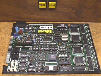The next thing we see (barely) is a little black box on the front wall which happens to be a coin meter, since this was an important item for an op to have operating properly, it was in all test fixtures. Mounted on the front wall next to it is the speaker & the JAMMA speaker lines simply terminate directly to it with .187 QDs.
