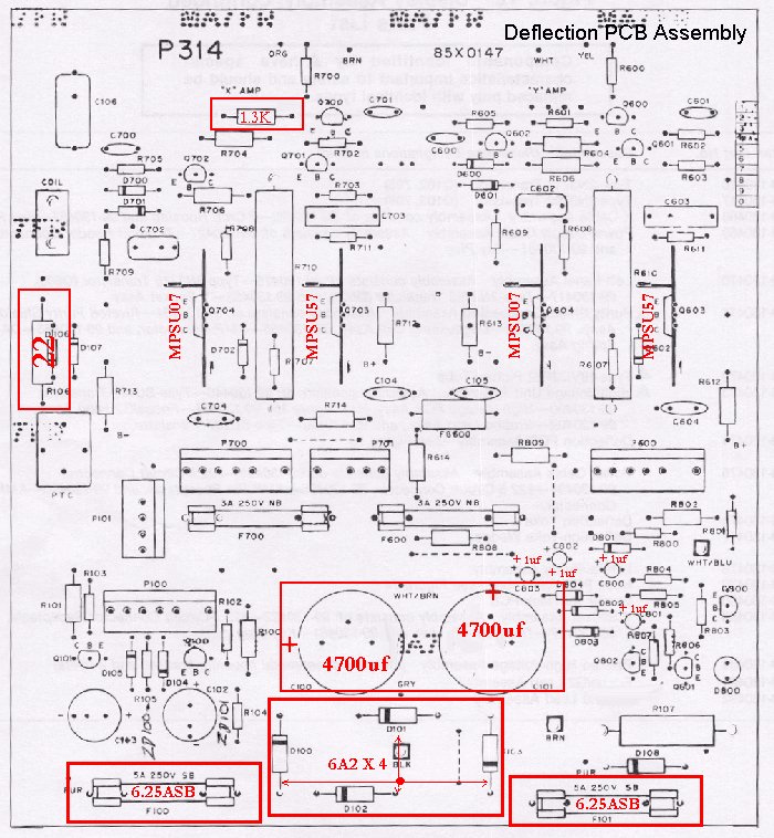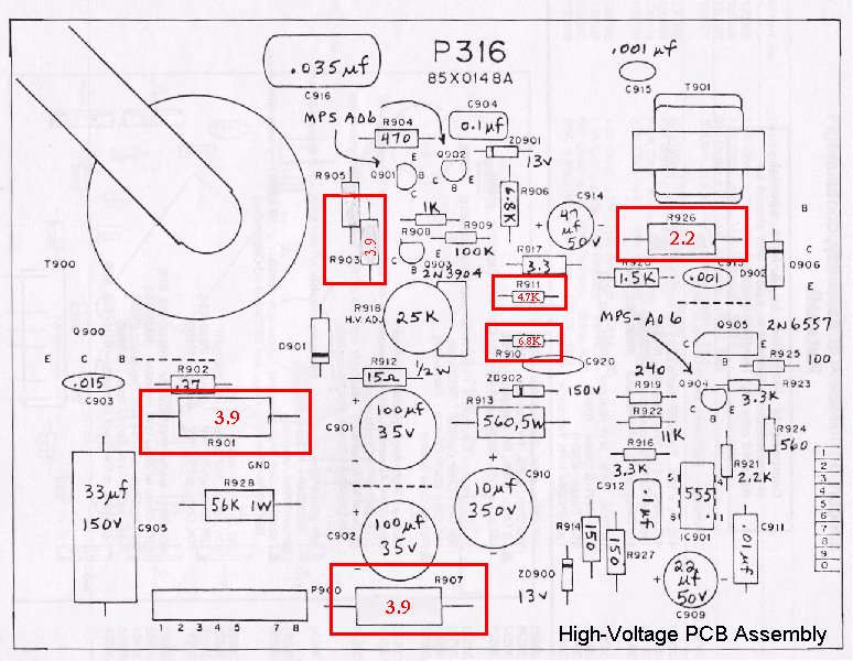 "The other thing to be careful of about Bob's ultimate 6100 cap kit is that the diodes provided for the deflection board are wayyyyyyyyyy under-rated. They get burned up to a short in a matter of minutes which then takes out other components in the LV section. I use 1N5408."