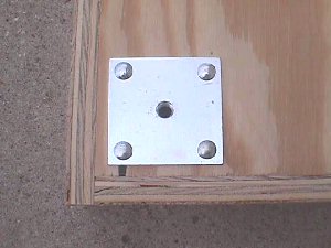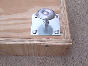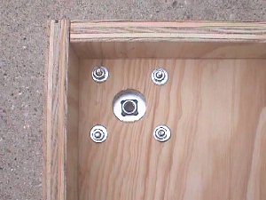 Most game manufacturers used T-nuts stapled to the bottom of the cabinet to screw the leg levelers into & as we all know this did not fair well for games that were often transported from location to location. The leg levelers got hung up on tail gates, dollies, curbs.. anything that got in their way... and often times would pull the T-nut completely off the cab. Sometimes just sliding a game into position would bend the leveler enough to rip them off entirely. When these injured cabs came through the shop we always mounted new heavy duty leg leveler plates & it's all we used on our new cabs, as well. Looking at pieces of what once were cabinets post Katrina the one thing that really stood out was that the leg leveler plates were still intact, even when the bottom was separating from the rest of the cab, proving that these most likely will last a lifetime. I've explained mounting the leg levelers & plates to newbies so many times over the past 14 years... doubling over the recent craze of building your own cab to house the multi-game bds... that I figured I best note it here to point future builders to. K... you got all these parts & now what to do with them. I made a simple cab bottom corner cutout & I'll run through this for one mounting & leave you to your imagination for the other three :-) The very first step if you're doing a replacement is to make sure there is no wiring or components such as transformers, power supplies or filters in the area of the 4 mounting plates on the inside of the cab. The last thing you want to do is drill blindly and pull a fistful of wiring out of the hole when you pull the drill bit out :-( Step 2... Line up your plate one inch from each cabinet edge and use it as a template to mark your drill spots. Step 3... Just taking a second look inside to be sure nothing gets drilled! :-) Step 4... Use a quarter inch drill bit to drill the 4 outside holes. Step 5... Use whatever you used to drill out your 1 1/8" CP button holes to drill the center hole. This is something you should already have onhand making it an easier job & it makes for a roomy hiding spot for the welded nut, as well as, a neat & smooth finish job on the underside where you have to stick your hands for final adjustments. Step 6... Fasten the plate with the 4 carriage bolts, washers & kep nuts. Using kep nuts eliminates the need for a lock washer & binds the slotless carriage bolts in a tight cinch. Step 7... Ready to install the leg leveler making sure to leave the nut on it. Step 8... Install all four leg levelers to approximately the same distance for a good starting point. Step 9... After your cab is in it's final resting place you can level it by adjusting each leveler & once you're happy with it you tighten the nuts to the mounting plate securing each leveler in place for eternity... or until the next time you move it. If you want a complete kit for your cab you can just ask for Bob's Leveling Kit ($18.00) to save shopping the individual items on the Parts Page. Happy Gaming... |