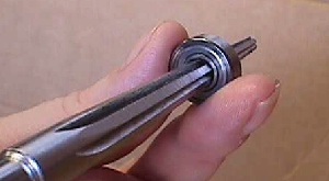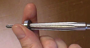 I take a high speed drill & insert a reaming tool in it. Now since the reaming tool cannot do it's designated job, because the center is riding on ball bearings, it has no choice but to grip the core & spin it ninety miles per hour thus breaking it in. When doing new bearings, I hold them between my thumb & forefinger as in the pic below. NEVER do this with a used bearing!!
