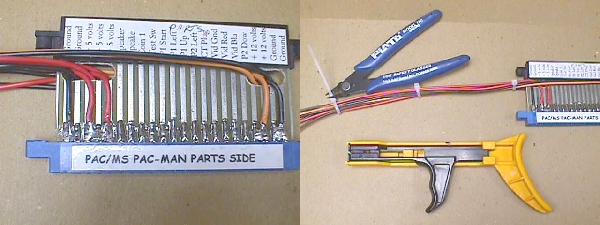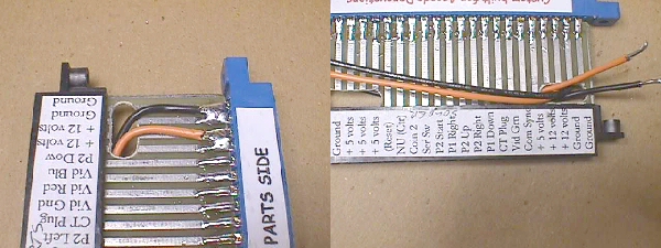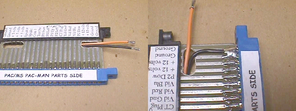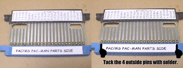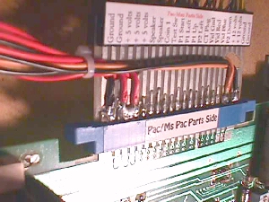 Here's something that I always do before ever taking that old Amp wannabe edge connector off the board and that is to put a *parts side* label on it. There is no end to the number of times that a Pac connector has been put on backwards. I had a tech stop by last week that has been making his living for the past 30 years in coin-op & what does he ask me... what kind of problems should I look for after plugging up a Ms Pac harness backwards & having everything go dead? I told him if he was lucky.... luck seems to have a lot to do with coin-op repair :-)... all he would need to do is change the fuses, and he was, but shouldn't he have known to check the fuses in the first place. Sometimes it's the simplest of things that get overlooked by even the pros.
