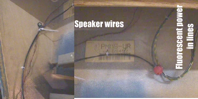 I tapped into the blue/gray wire & the black/white wire at about dead center over the top of the monitor as shown in the pic above. It can then go over & down through the speaker wire cable clamps on the cab side to a central area for powering the switcher.