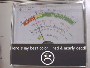Another tube has died from lack of use. This is one more good reason for me to be working hard in retirement... so I don't rust up & start up with the low emissions... yikes! I don't know how many times I've heard that the monitor that I just declared dead was the best pic that the owner had ever seen before it went into storage. Oh well... I'll see if my luck with rejuvination is any better than it's been thus far :-(