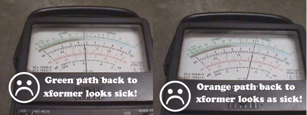 After a sucessful transplant I took the measurements over again from the xformer to PCB & all results were the same & you can see from the pic below the proper reading for a good pathway.