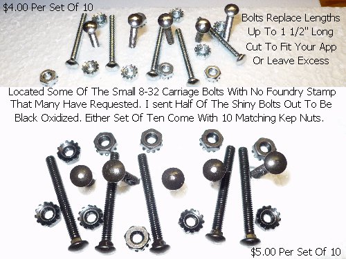 Carriage Bolts 8-32 x 1 1/2" Black 10 For$5.00