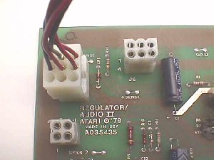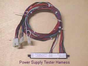 As I said, basic power & video bundles are all you need & with a standard 5' harness using separate bundles you will have approximately a 10' reach between games. Of course, you can connect back to the same game monitor to eliminate wiring, break connectors & PCB as suspect. If you're starting out with a used JAMMA harness you can remove any I/O lines that are not necessary making this much easier to handle & store. For the video termination if you use a 4 position & a 2 position Molex .156 housing you'll be able to mate up to just about any monitor's header. As you know from the Monitor Extension Page there are a few exceptions, but chances are you'll always have a suitable monitor & by using the 2 & 4 position connectors you can adapt to any situation. For example, the 2 connectors will fit side-by-side for a +sync connection such as the Stargate & other WMs games of that era. With the looped sync connection in the 2 position connector you can easily hook up to a separate header with -sync input such as the G07 monitor uses. To go a step further, when hooking up sync to a K7000 chassis where only the HSYNC is used for composite sync, the 2 position can hang out over P6 of the header into the keyway to supply the single composite +sync connection, or it can hang out over the 10th position of the header for composite -sync. In power handling you'll want a base break connector to work from for different power supply hookups. This allows rerouting lines to their correct positions, so that you don't need a harness for every type PS you want to test. I've always used the Molex .093 housing... the 3x3 in the pic of my harness above... since the first PC-type supply was introduced to the arcade game. The reason is simply because the mfrs followed an assigned pinout & this allows for the test harness to plug into any PC-type power supply directly & unadapted. This type PS is easy to use outside of a game cab, as well, because of the 2 simple connections to AC in & DC out. Any PS you want to test can easily adapt to the PC-type 3x3 connector.