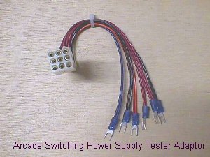 The adaptor above will utilize the Galaga's linear power supply to the test harness' 3x3 DC power input. By using this power to drive your JAMMA test PCB & feeding the video to a known good monitor, whether in another of your games or just a spare monitor sitting out of a cab, you'll be able to see whether, or not, the DC power is clean. If you get the same crappy looking pic when hooked up this way, you've proven out that the Galaga's PS is the fault.
