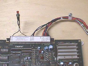 Just slip one lead into a ground position on the JAMMA connector & the other one into the 1P start position. You can add a switch this way if you use another PCB that may have test screens by simply placing it in the correct I/O line, i.e., if "test" or "service" control these features on your PCB, just pin it to the appropriate position on the JAMMA edge connector. The pic above shows both bundles leaving the right side of the tote board thru a cable clamp... this is just to highlight the added I/O switch & you should use a cable clamp on either side with bundles separated for maximum mobility. The only other thing I can think of that may help you build your own is putting the basic pinouts here to save you from looking them up.