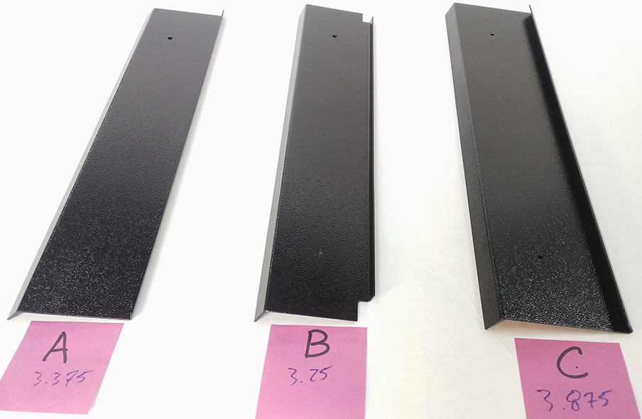 'B' stock panels have slight imperfections in the powdercoat on the bend and/or front surface. Can be hidden with a larger overlay. |